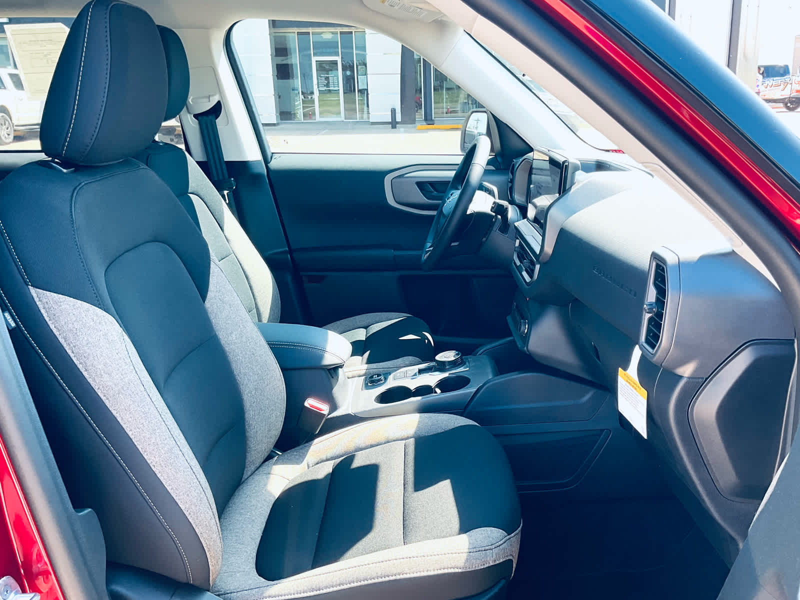CONVENIENCE PACKAGE Heated 8-Way Power Drivers Seat, (Fore/aft, up/down, recline, lumbar), Front Driver/Passenger Seat Back Map Pockets, Universal Garage Door Opener (UGDO), Premium Wrapped Steering Wheel, LED Fog Lamps. Ford Big Bend with Ruby Red Metallic Tinted Clearcoat exterior and Medium Light Smoked Truffle interior features a 3 Cylinder Engine with 181 HP at 6000 RPM*.