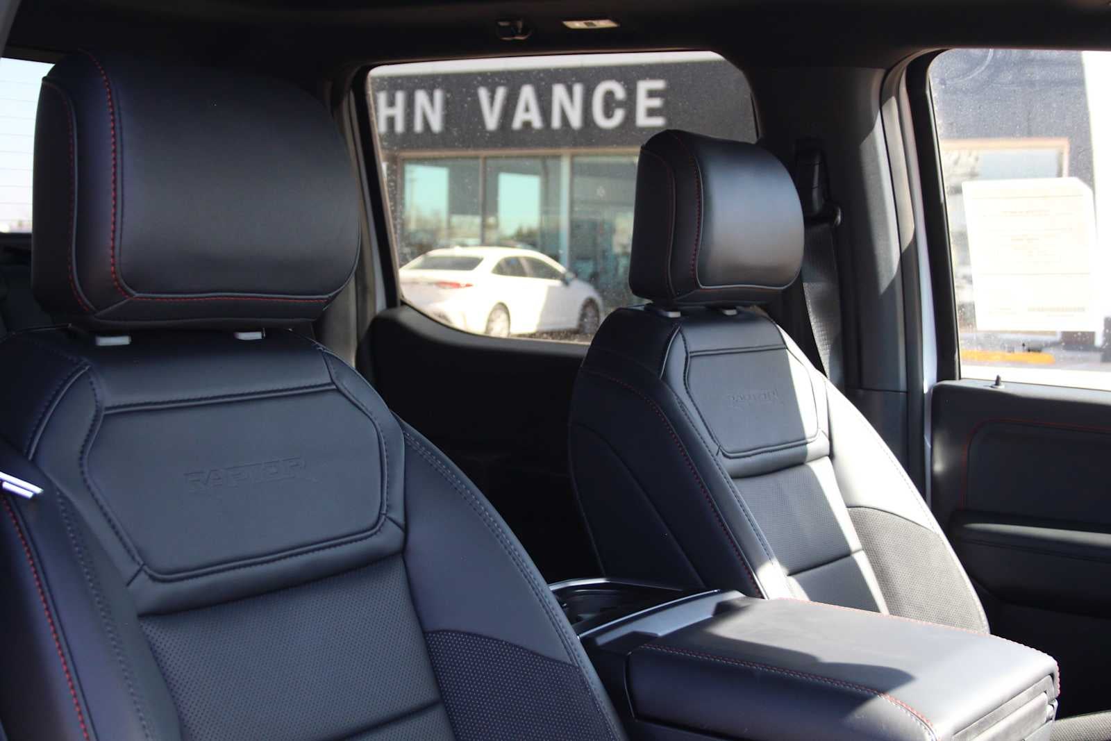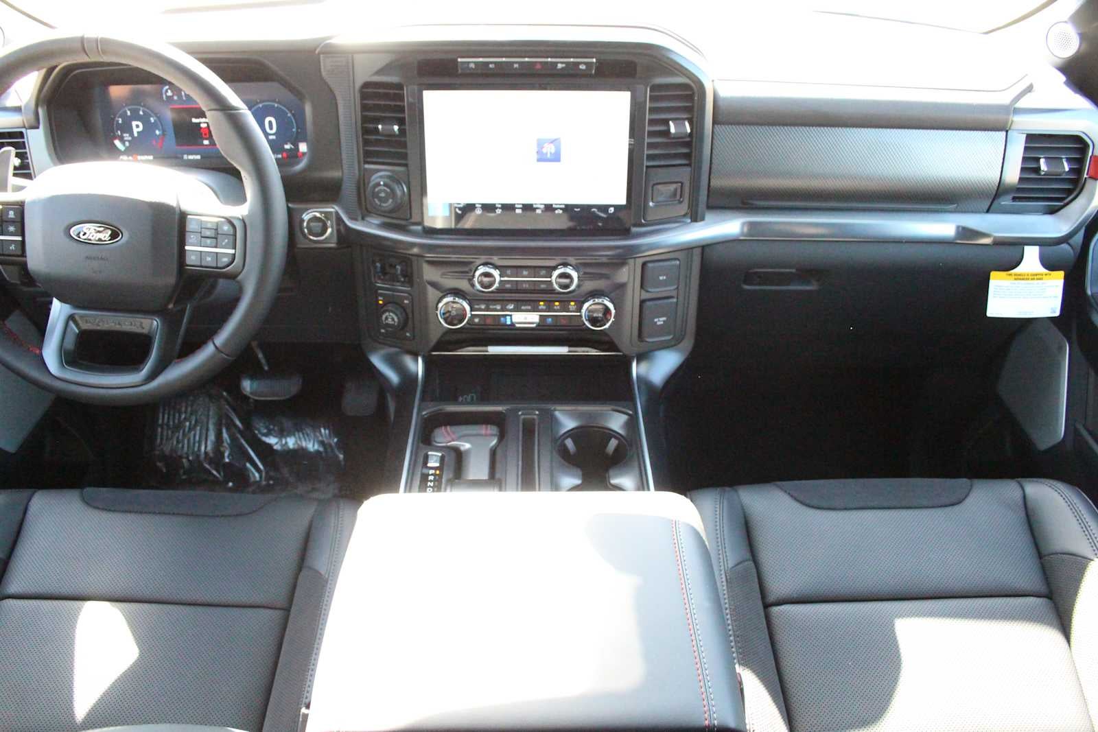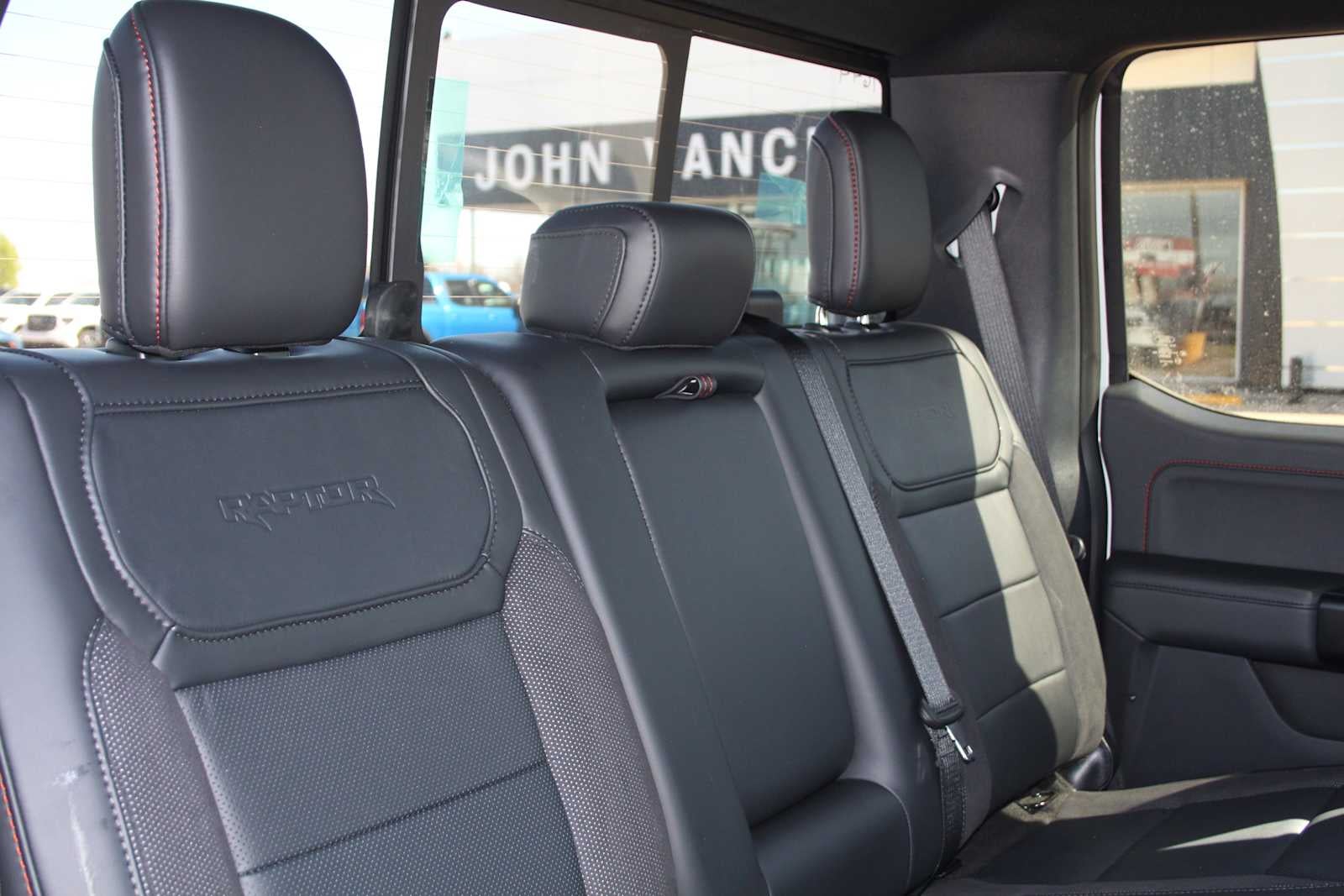 TWIN PANEL MOONROOF, TRANSMISSION: ELECTRONIC 10-SPEED AUTOMATIC SelectShift w/paddle shifters and terrain management modes: normal, sport, tow-haul, slippery, rock crawl, off-road and baja (STD). Ford Raptor with Oxford White exterior and Black interior features a V6 Cylinder Engine with 450 HP at 5250 RPM*.