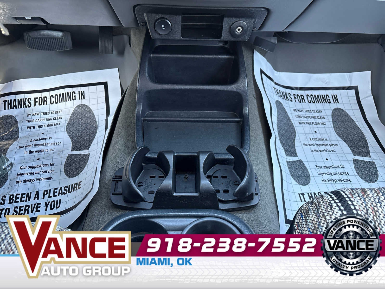 - Color-keyed carpeted floor covering & front floor mats
