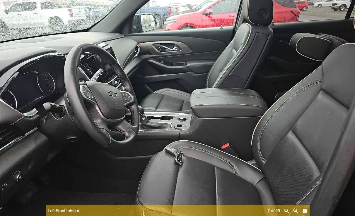 REDLINE EDITION includes (SS8) 20 Gloss Black painted aluminum wheels with Red accents, Gloss Black window surround, (VUP) Redline accent decals, Black mirror caps and door handles, Black painted rocker and wheel openings with Black Ice inserts, Black Ice grille surround and license plate applique, (CG6) Black Traverse badges with Red outline, (B94) Chevrolet Black Bowtie, (V59) Black roof rails, (C3U) Dual Skyscape 2-panel power sunroof and (V92) trailering equipment, TRAILERING EQUIPMENT includes (V08) heavy-duty cooling system, trailer hitch and (CTT) trailering assist guidelines (Includes (PZ8) Hitch Guidance with Hitch View. LPO, FLOOR LINER PACKAGE includes (RIA) front and second row all-weather floor liner, LPO, (RIB) third row all-weather floor liner, LPO and (CAV) integrated cargo liner, LPO, SUNROOF, DUAL SKYSCAPE 2-PANEL POWER with tilt-sliding front and fixed rear, includes power rear sunscreen, AUDIO SYSTEM, CHEVROLET INFOTAINMENT 3 PLUS SYSTEM with connected Navigation, 8 diagonal HD color touchscreen, AM/FM stereo, Bluetooth® audio streaming for 2 active devices, Apple CarPlay® and Android Auto® capable, enhanced voice recognition, in-vehicle apps, cloud connected personalization for select infotainment and vehicle settings. Subscription required for enhanced and connected services after trial period (STD), ENGINE, 3.6L V6, SIDI, VVT (310 hp [232.0 kW] @ 6800 rpm, 266 lb-ft of torque [361 N-m] @ 2800 rpm) (STD), TRANSMISSION, 9-SPEED AUTOMATIC (STD).