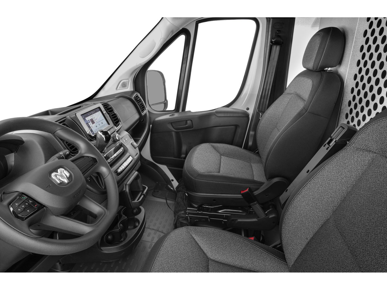 PASSENGER DOUBLE SEAT Included w/the independent drivers seat is a passenger seat w/a middle seat attached, SPEED CONTROL, BLACK, VINYL BUCKET SEATS, POWER FOLDING/HEATED MIRRORS, SECURITY ALARM, TRANSMISSION: 9-SPEED 948TE AUTOMATIC (STD), ENGINE: 3.6L V6 24V VVT (STD). Ram ProMaster Cargo Van with Bright White Clearcoat exterior and Black interior features a V6 Cylinder Engine with 276 HP at 6400 RPM*.